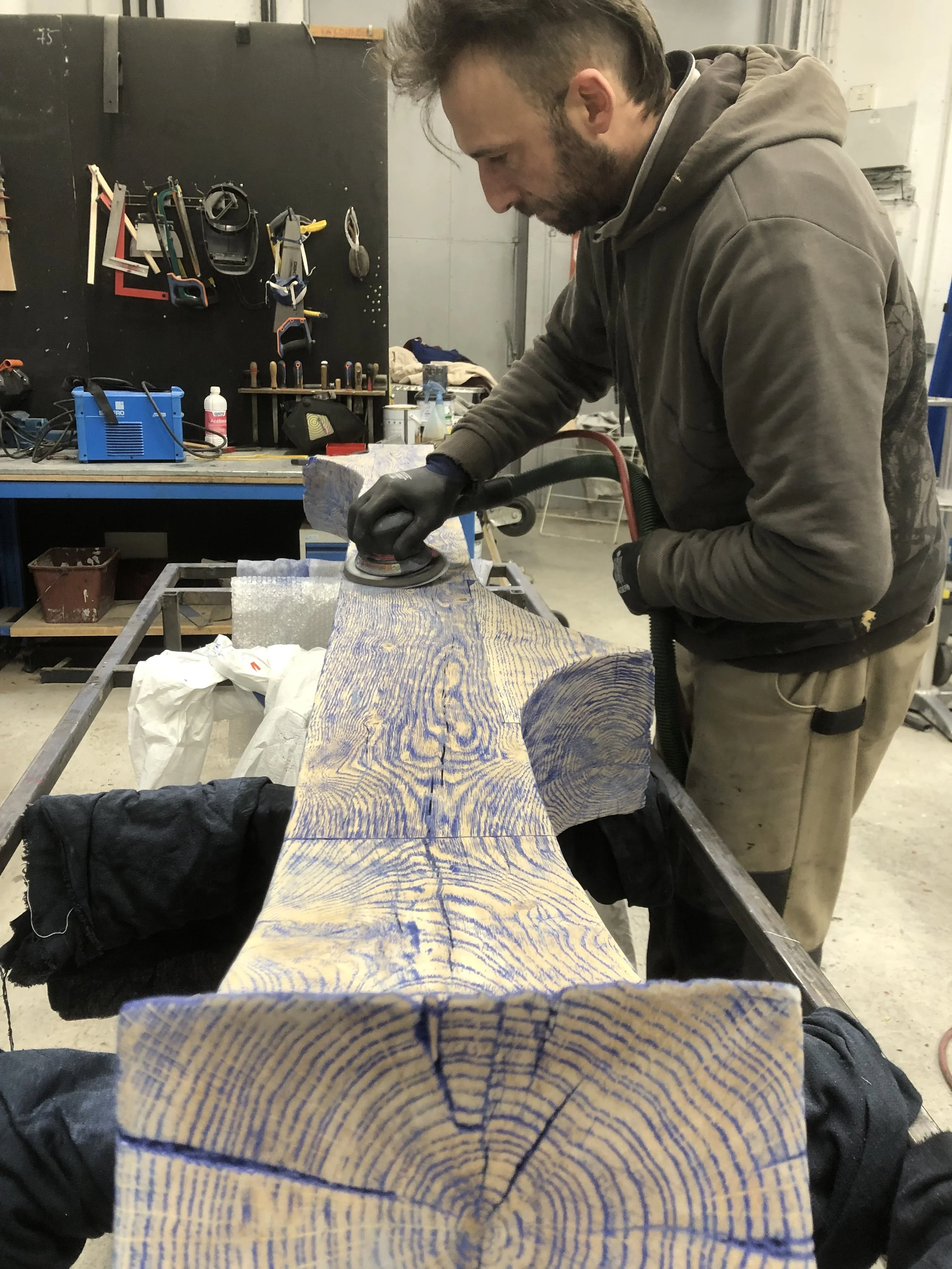 La construction de cette œuvre est possible grâce à Guiseppe Pellegrino qui m’accompagne sur cette aventure. Ainsi qu’au grand chêne qui nous offre son bois …
