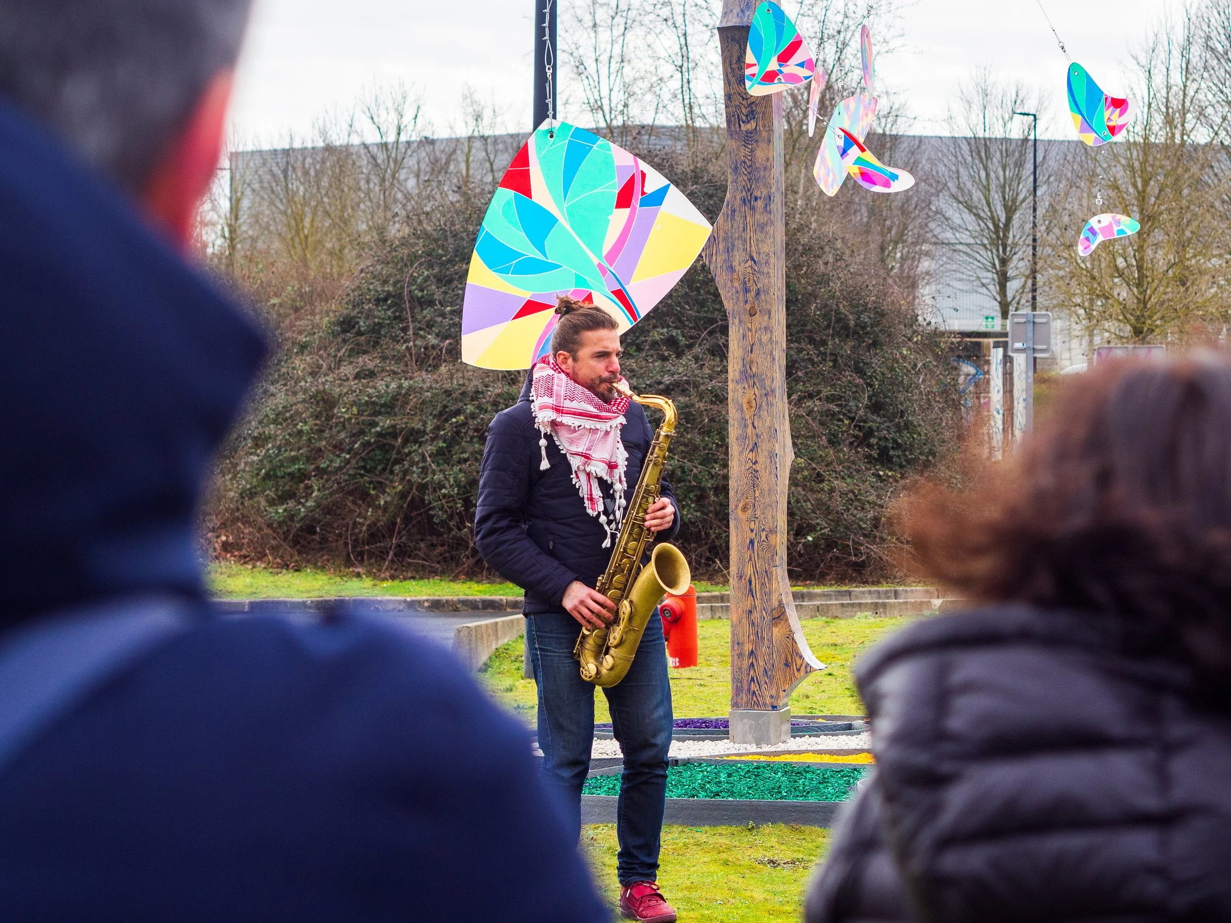 Mené avec des résident autistes de la Maison Perce-Neige pour la composition graphique, et avec des jeunes adultes du CEF concernant la construction-menuiserie, tous situés à Combs la ville, ce projet prend la forme d’une œuvre à construire et à installer sur le rond point commun à ces deux structures.